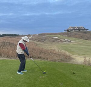 For the last 25 years I have had the great pleasure of playing at Bulls Bay club in Awendaw, about 20 miles north of Charleston, SC. It is a golf club, not a country club. No tennis or pool, no fuss, just great links, special staff (and quality food). Designed by legendary Mike Strantz, the course is very unusual for this area of the “low country”. He built hills to challenge us. The clubhouse may be the highest point on the coast from Miami to New York.