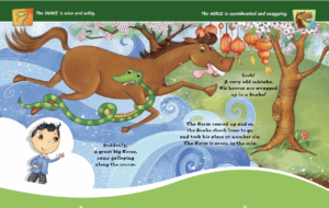 You will know from reading "When Fred the Snake and Friends learn the Chinese Zodiac calendar" that "the horse was 6th in the Great Race" and is "warmhearted and easygoing".