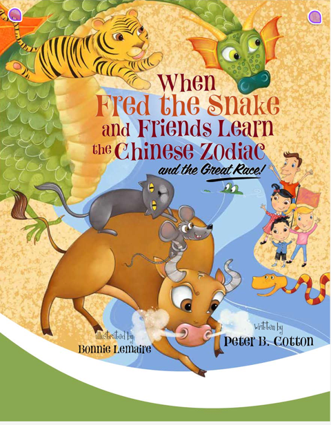 At school, Fred, Perdy and Jack meet two Chinese kids, Connor and Ellie. Fred knows that 2025 is the year of the snake in the Chinese Zodiac calendar and asks Connor and Ellie to explain it. Twelve animals each have a year, their sequence being determined by the order in which they reach the Jade Emperor at the Heavenly gate. The book shows the exciting eventful race and the characteristics of the participating animals: rat, oz, tiger, rabbit, dragon, snake, goat, horse, monkey, rooster, dog and pig. They all get together with the animals from the previous Fred books to enjoy the traditional Chinese New Year celebrations including a feast and a Dragon and Lion dance.
